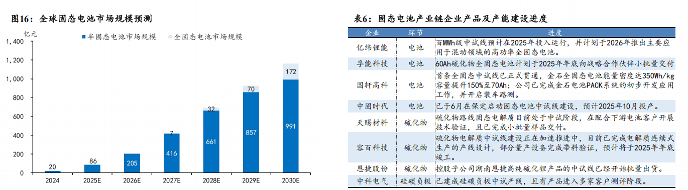双沉驱动下智能仓储物流市场增加可期。一方面,智能制制等新兴出产模式对出产时效性、精确性以及逆向物流等提出了新要求,仓储物流系统需要做到收支库时间更精确、权责分派更明白等;另一方面,人力、仓储成本提拔,各行业仓储从动化程度&面积操纵率提拔需求火急,双沉驱动下我国智能仓储物流需求无望持续增加。做为智能仓储物流的焦点配备之一,挪动机械人AGV出货量无望持续走高,我们预测2027年中国挪动机械人市场销量无望达20。3万台,2023-2027年CAGR=12。9%。 规划产能超400GWh,2028年无望进入GWh级使用级别。据高工锂电数据,截至2024年11月我国固态电池财产链企业超200家,行业累计规划产能超400GWh。全固态电池无望正在手艺冲破、工程化量产及下逛验证完成后,于2028年进入GWh级使用阶段。据《2025年固态电池高质量成长蓝皮书》预测,到2030年全球固态电池出货量将达到614。1GWh,全固态电池市场规模将达172亿元。