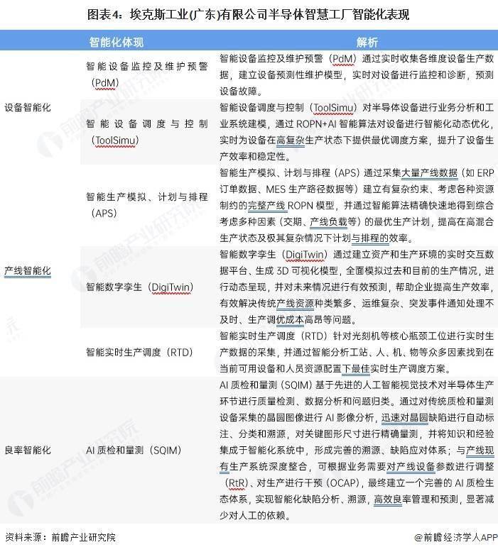 中国半导体行业相较于海外发财国度而言起步较晚,当前处于“逃逐者”的,正在多个范畴均取得了喜人的,出现了诸如华为海思、、长江存储、等正在手艺范畴曲逃国际领军程度的企业。然而正在宏不雅经济修复不及预期,下逛需求疲软的环境下,加之中美商业博弈对中国半导体行业影响深远,当前中国半导体行业面对着严沉挑和。当前,多方面缘由的感化下,2022-2023年中国半导体行业市场规模增速略有放缓,但中国照旧是全球最大的半导体市场。近年来,集成电市场占半导体行业全体市场占比跨越80%,连系集成电正在半导体行业的市场占比以及集成电市场规模,初步测算中国半导体行业市场规模全体呈现增加趋向,此中2024年中国达到16162亿元。 全球半导体供应欠缺的缘由之一是半导体系体例制工序复杂,每个硅晶片必需正在严酷节制的前提下颠末多达 1600个步调才能制成计较机芯片。而简单地加速出产以满脚激增的需求并不容易,新建一座新晶圆厂可能需要两年多的时间,至多10亿美元的投资,有时以至是数倍,若何提超出跨越产效率成参半导体企业的搅扰。因而将智能制制纳入其全体计谋打算成为各个半导体企业的需要行动,各大半导体厂商如日月星、华星等等纷纷起头聪慧工场的扶植。中国半导体范畴聪慧工场次要涵盖产物无数控机床、压铸机、工业等,具体环境如下: 埃克斯工业(广东)无限公司是一家具有立异性焦点手艺的国度高新手艺企业,其基于“ROPN+AI”焦点手艺研发的一系列智能工业处理方案,已正在数十家龙头半导体厂商成功摆设。改处理方案按照中国半导体企业特点进行开辟,可以或许模块化摆设于云端和当地,通过取产线现有的CIM系统深度集成,构成完美的营业生态系统,设备、营业法则、物料等全面整合、协调管控,帮帮企业处理环节出产问题,提超出跨越产力和分析合作力。改处理方案采用面向资本的ROPN底层建模手艺,模子的复杂度跟着系统的资本增加呈线性型上升,取保守建模方式的指数型上升比拟,模子复杂度增加速度大幅度降低,使底层模子更为简练、紧凑。正在该底层模子之上,融合AI手艺,使得决策系统的算法成本更低、耗时更短、结果更佳。 将来,设备将向高精取高集成化标的目的成长,对聪慧工场、从动化车间、智能制制设备的需求将持续扩大,中国半导体设备范畴聪慧工场成长前景广漠。